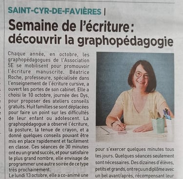 Béatrice Roche, graphopédagogie 42 son interview dans "Le pays roannais" (à lire)