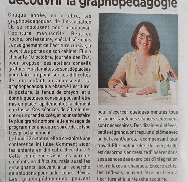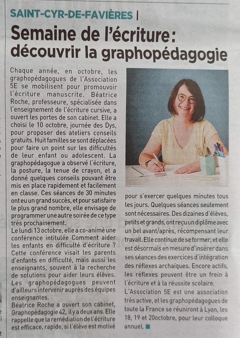 Béatrice Roche, graphopédagogie 42 son interview dans "Le pays roannais" (à lire)